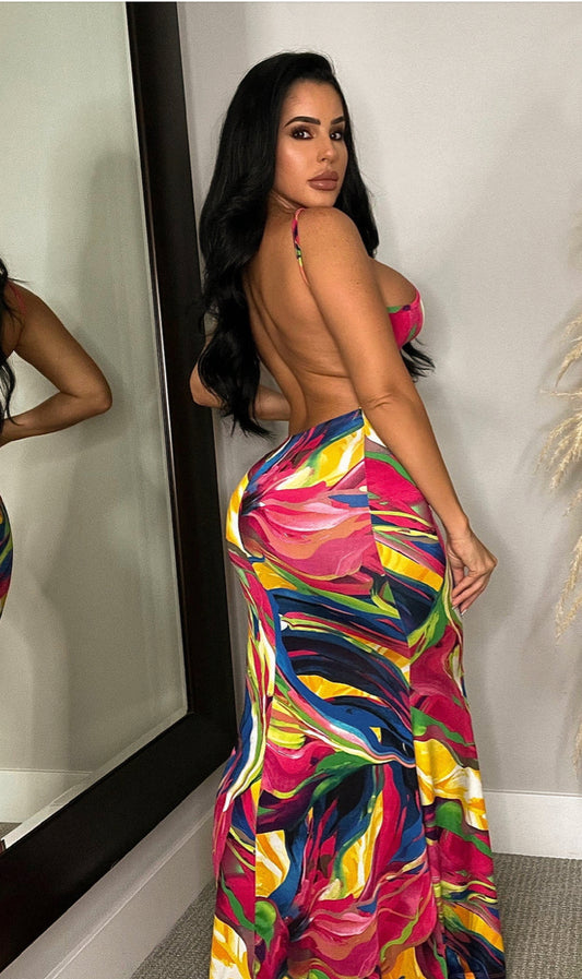 Cross Back Sleeveless Maxi Dress - Fuchsia Multi
